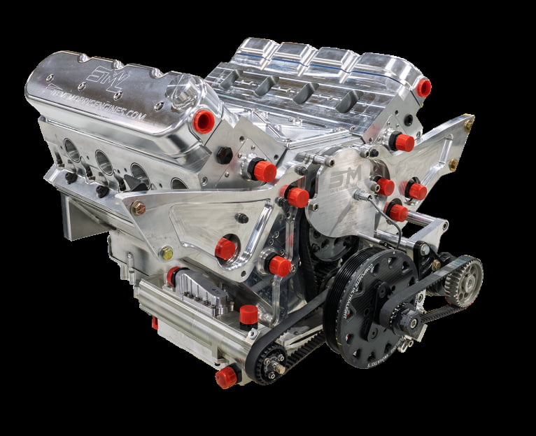 The SML platform is the superior choice when looking to make big power on a smaller platform. Not only is it made from high grade billet aluminum, it has been completely designed to become the strongest LS on the market. This is a TRUE 6 bolt design, utilizing (6) 1/2" head studs per cylinder, not the typical 4 with 2 small bolts. Not only that, but the holes are symmetrically placed around each cylinder to provide equal strength around the entire bore. Unlike many water-cooled blocks, the SML has water jackets on both the bottom side of the bore and the top side to hold up to the most demanding applications. The heads also have cooling passages, but no water crosses over from block to heads, each has its own separate supply. With exhaust ports in the typical LS position, the SML is designed to be a drop in replacement for your existing LS setup.
