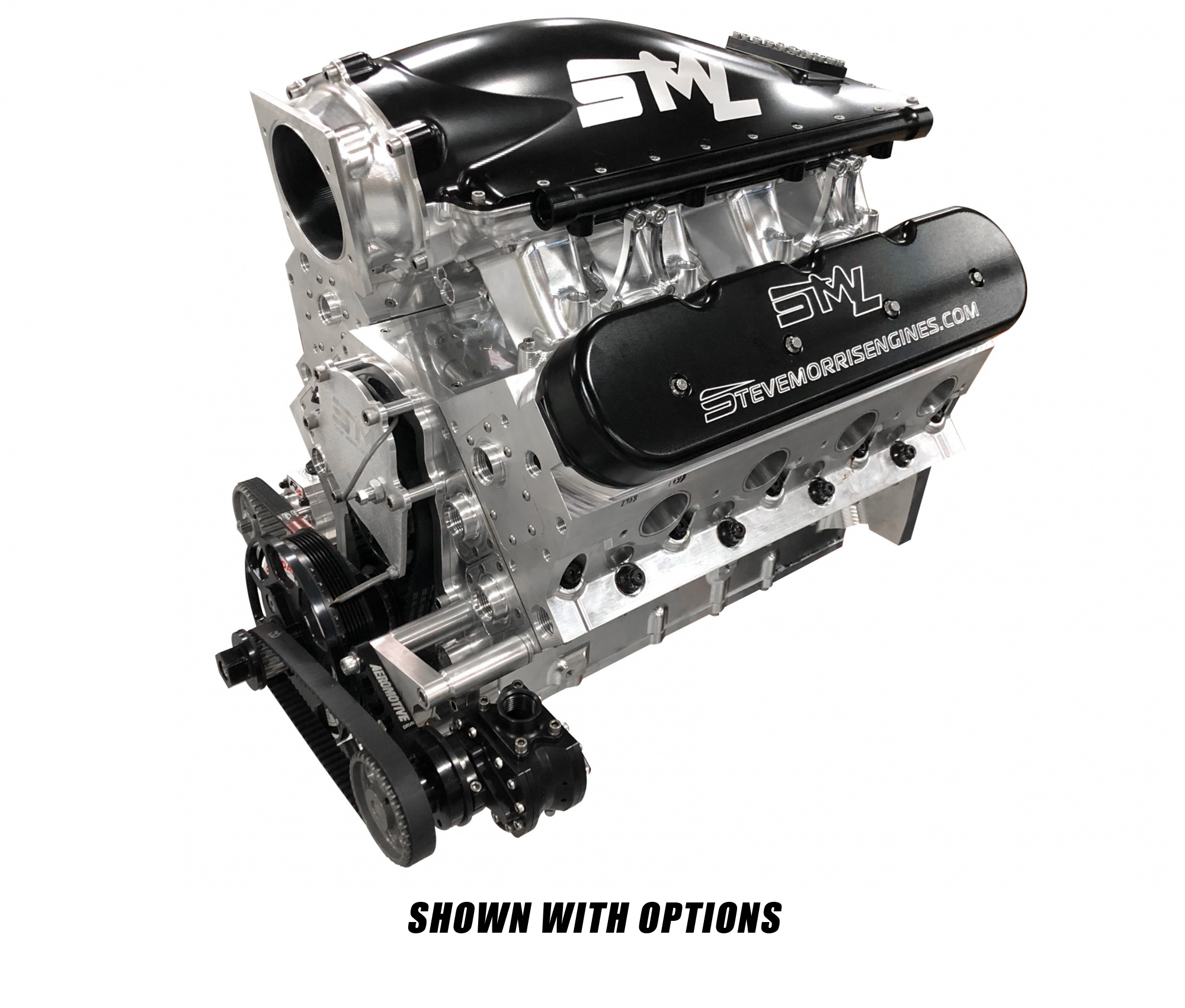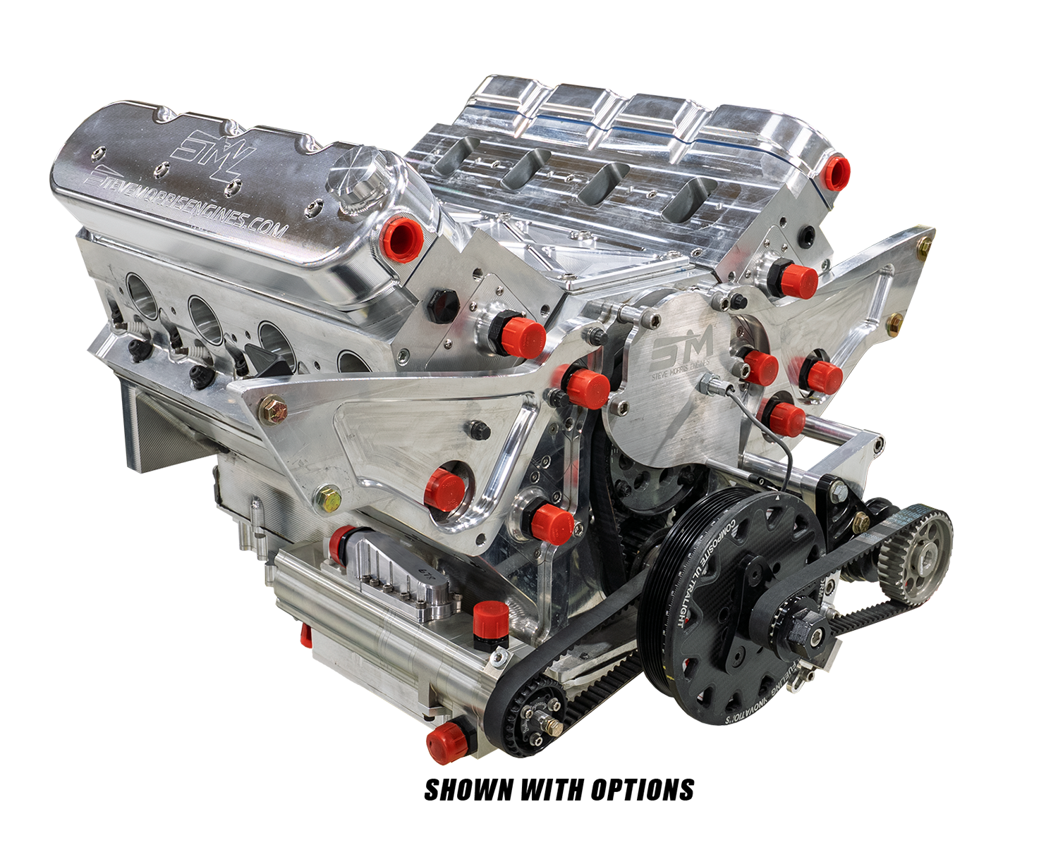 The SML platform is the superior choice when looking to make big power on a smaller platform.  Not only is it made from high grade billet aluminum, it has been completely designed to become the strongest LS on the market.  This is a TRUE 6 bolt design, utilizing (6) 1/2" head studs per cylinder, not the typical 4 with 2 small bolts. Not only that, but the holes are symmetrically placed around each cylinder to provide equal strength around the entire bore.  Unlike many water-cooled blocks, the SML has water jackets on both the bottom side of the bore and the top side to hold up to the most demanding applications.  The heads also have cooling passages, but no water crosses over from block to heads, each has its own separate supply.  With exhaust ports in the typical LS position, the SML is designed to be a drop in replacement for your existing LS setup.
