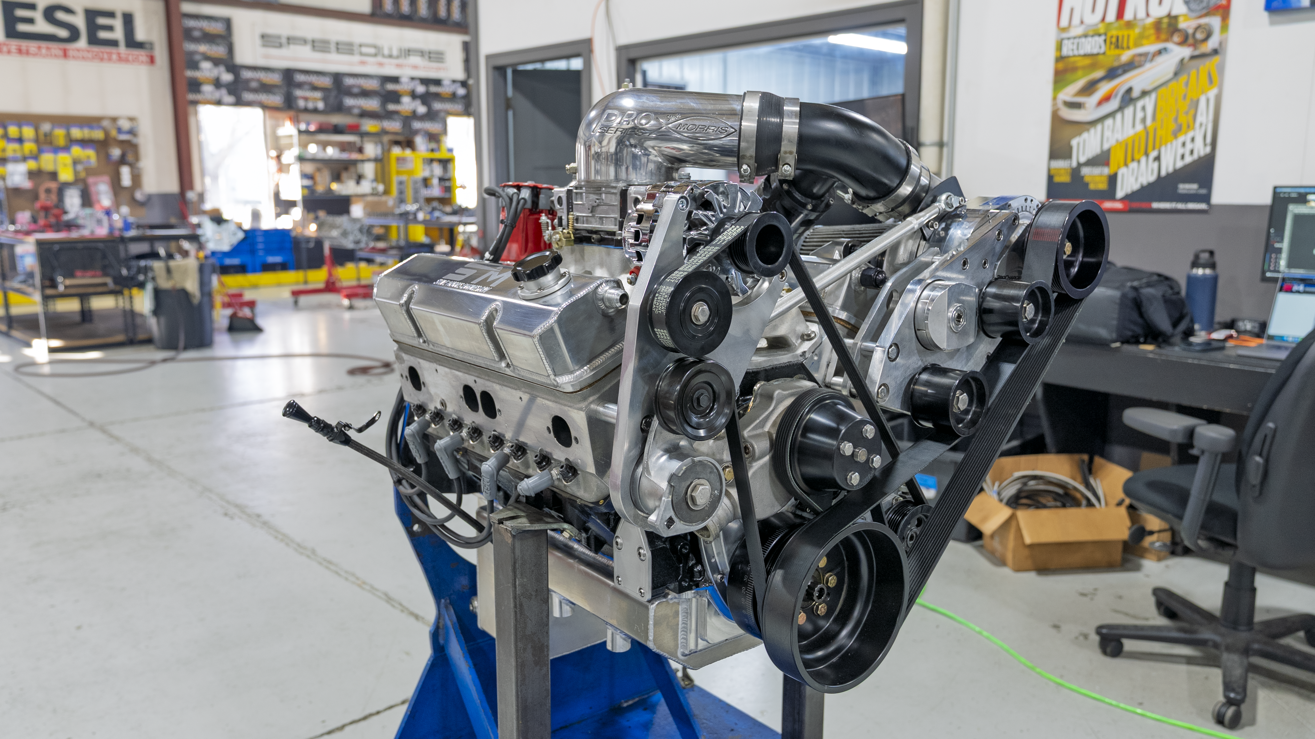 BBC 540 NA Fresh engine, 500+ HP on pump gas, we will dyno and tune with a carb, engine can come with the carb we tune with or we can put a Holley Terminator Stealth on it. ( Extra cost ) We will not use the Fast System shown on it.